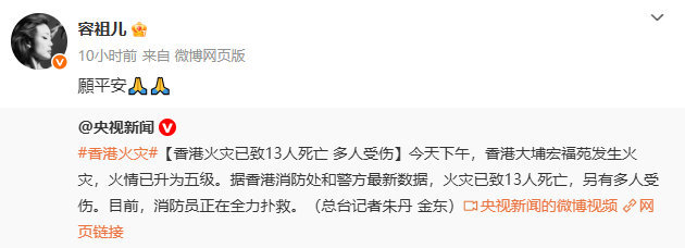 众多香港艺人也纷纷通过社交平台发声,表达关切与祈福之情。