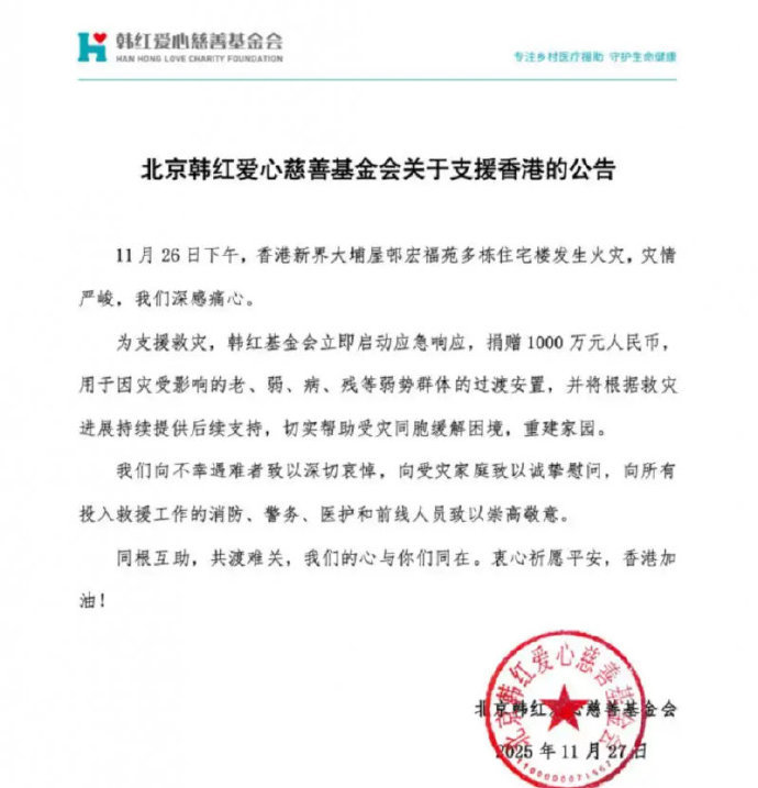 香港灾情同样牵动着内地艺人的心,他们以发文祈福、捐款捐物、暂缓商业活动等多种方式,传递“同舟共济”的温情与力量。